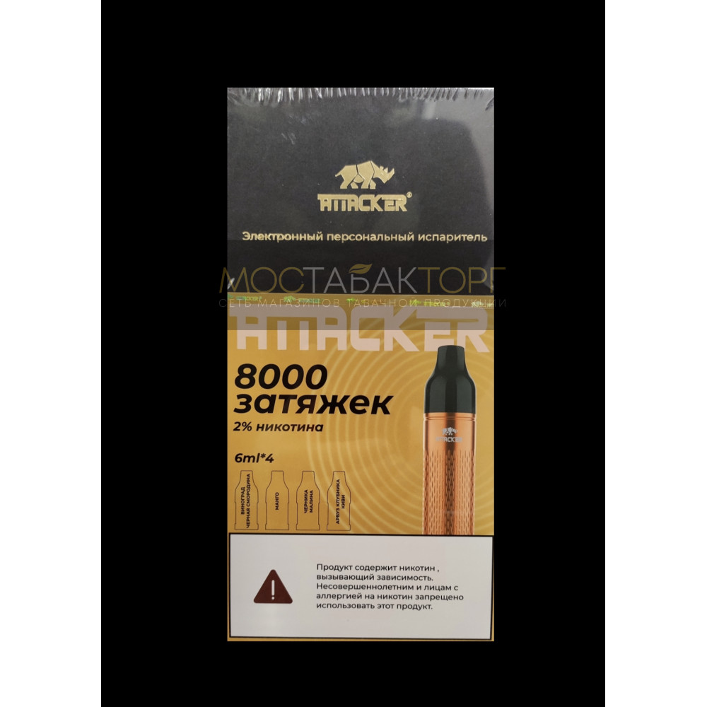 Набор Attacker K-One 8000 Золотой (вкусы: Виноград Чёрная Смородина, Манго, Черника Малина, Арбуз Клубника Киви)